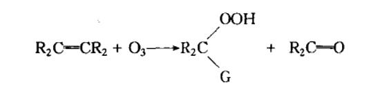 式中G代表OH、OCH?、OCCH?等基。反應的 很終產物可能是單體的、聚合的、或交錯的臭氧化物的混合體。臭氧化物分解成醛和酸。